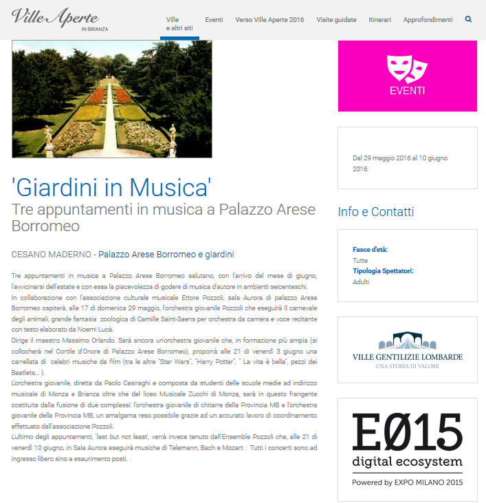 Ville Aperte in Brianza è un progetto gestito e coordinato dalla Provincia di Monza e Brianza, che dal 2012 si occupa di far scoprire le bellezze nascoste del suo territorio e non solo a migliaia di visitatori.