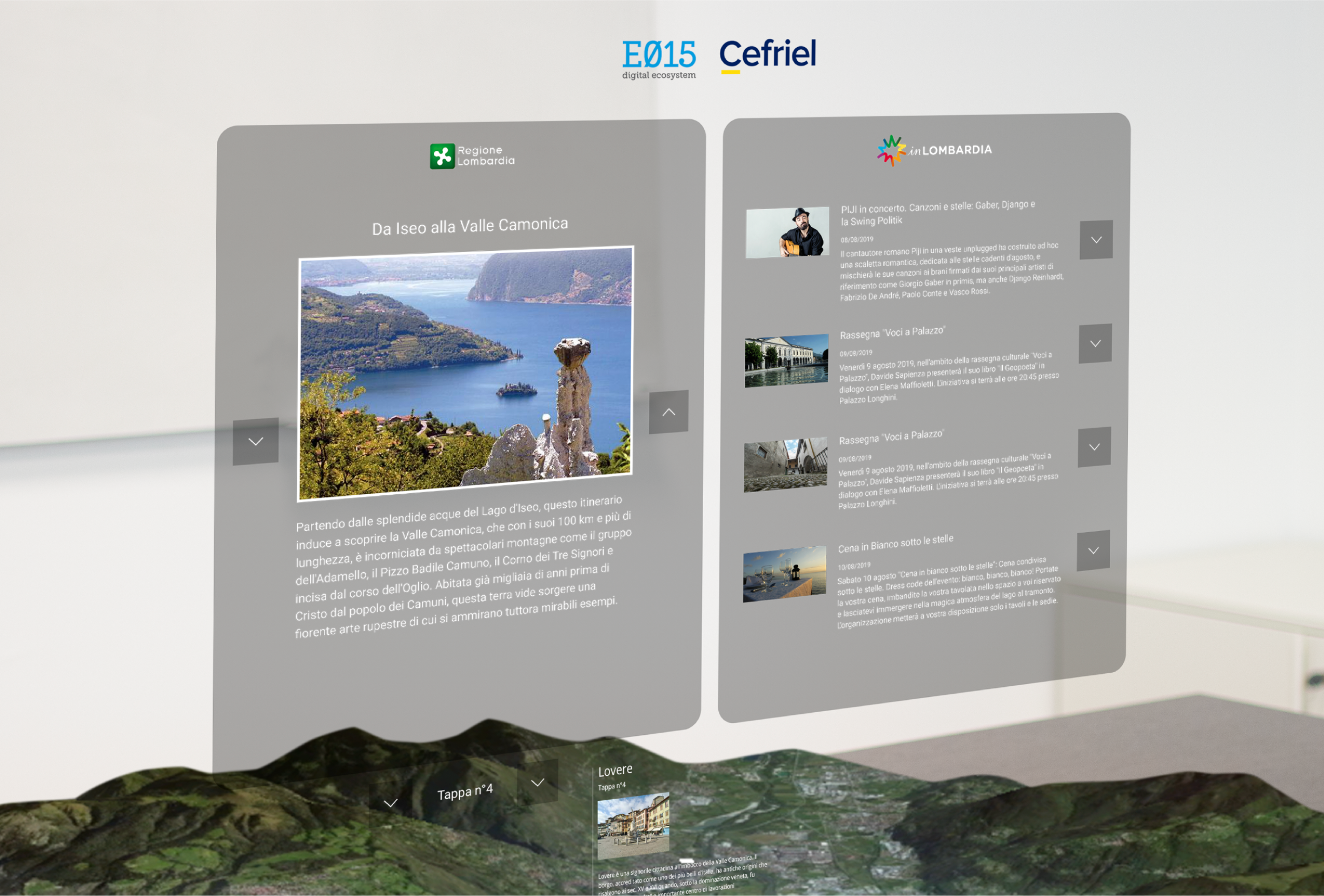 Applicazione in realtà aumentata che permette di visualizzare eventi e itinerari in Lombardia, visualizzando ogni singola tappa su di un diorama virtuale in 3D.