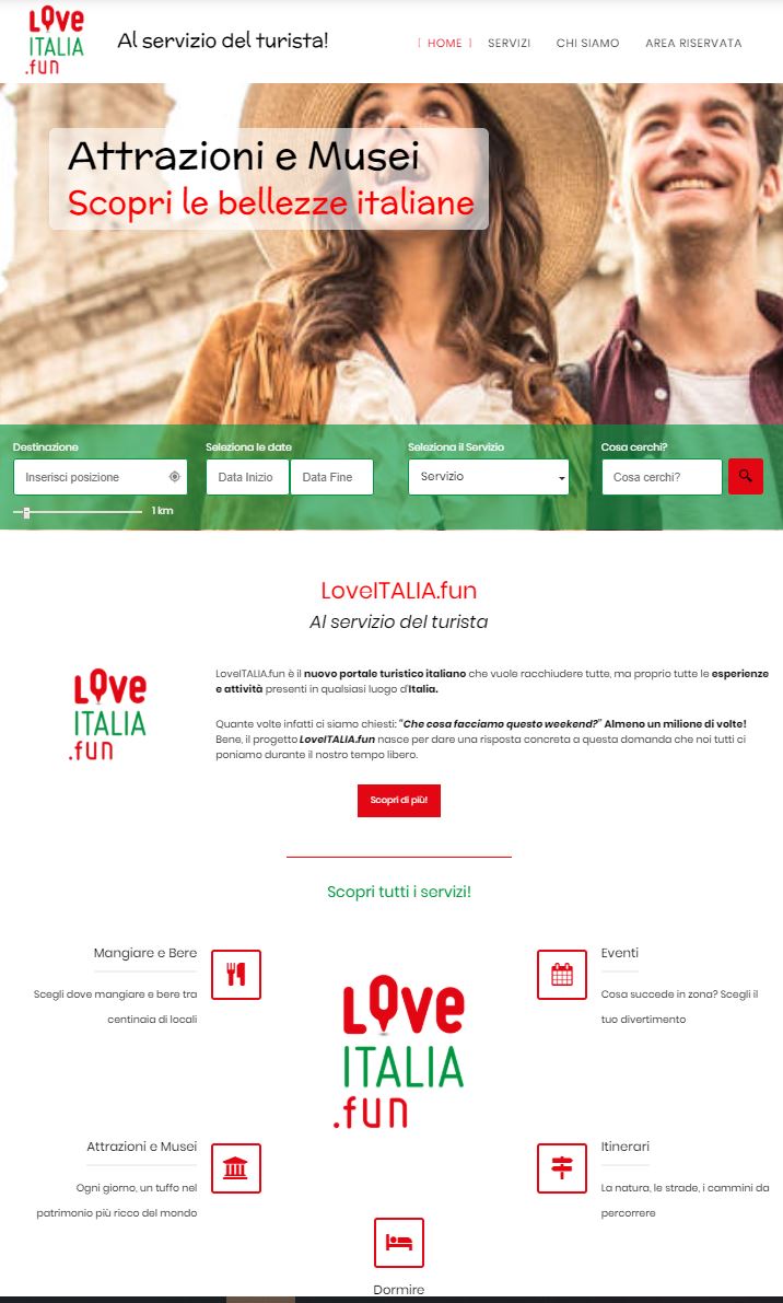 Portale di promozione turistica del territorio italiano. Su LoveITALIA l'utente troverà Eventi, Manifestazioni, Attrazioni, Musei, Itinerari, Alberghi, Ristoranti... insomma tutto ciò che un territorio può offrire al turista in termini di divertimento, cultura, accoglienza, e ristorazione.