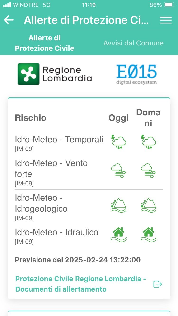 Il servizio relativo alle interconnessioni con l'API E015 "Allerte Protezione Civile" è attivo nei comuni di: