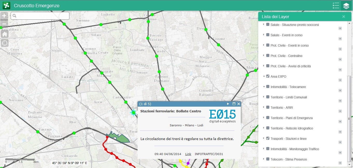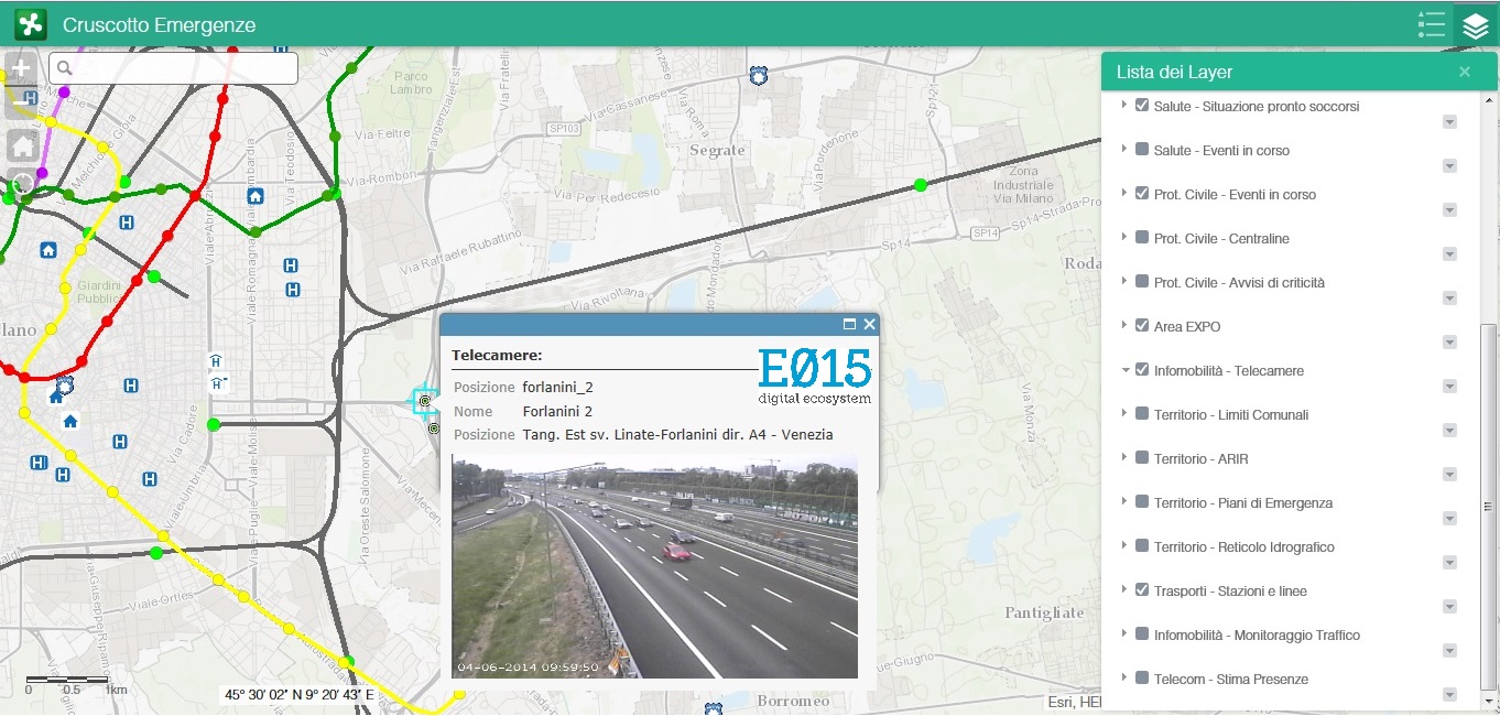 Il «cruscotto emergenze» visualizza in modo integrato dati del territorio, forniti anche tramite servizi E015, per arricchire il patrimonio informativo delle sale operative degli enti che partecipano ai tavoli di coordinamento in Prefettura.