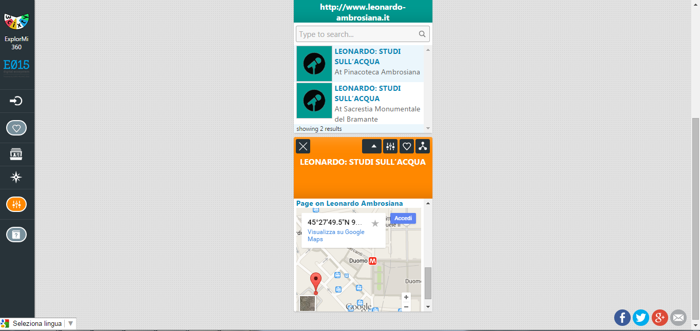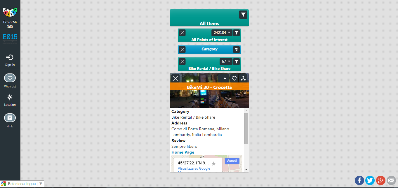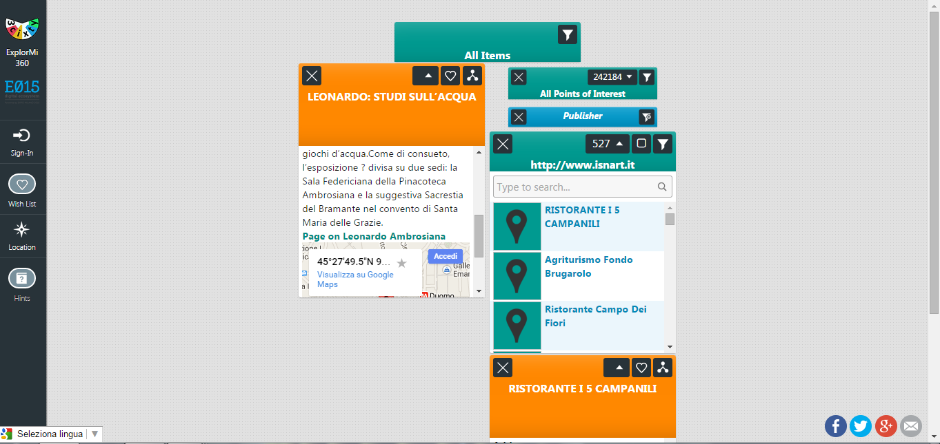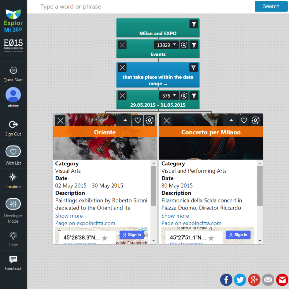 La App "ExplorMI 360", utilizzabile sia via web che tramite smartphone, dedicata alla città di Milano e dintorni utilizza la piattaforma 3cixty per offrire informazioni integrate e complesse su diversi aspetti della vita in città, ad esempio, si possono chiedere informazioni relative a "un hotel a 3 stelle vicino ad una stazione di car sharing" oppure "un buon e rinomato ristorante francese che si trovi a 20 minuti di tragitto in metropolitana dal sito di Expo 2015". La App è sviluppata nell'ambito del progetto 3cixty, finanziato da EIT Digital; i partner del progetto sono CEFRIEL, DFKI, Eurecom, Fondazione Politecnico di Milano, INRIA, Institute for Sustainability, Politecnico di MIlano, Telecom Italia, TU Delft, UCL, Ambientic, Evensi, Innovalor, Localidata, Mobidot.