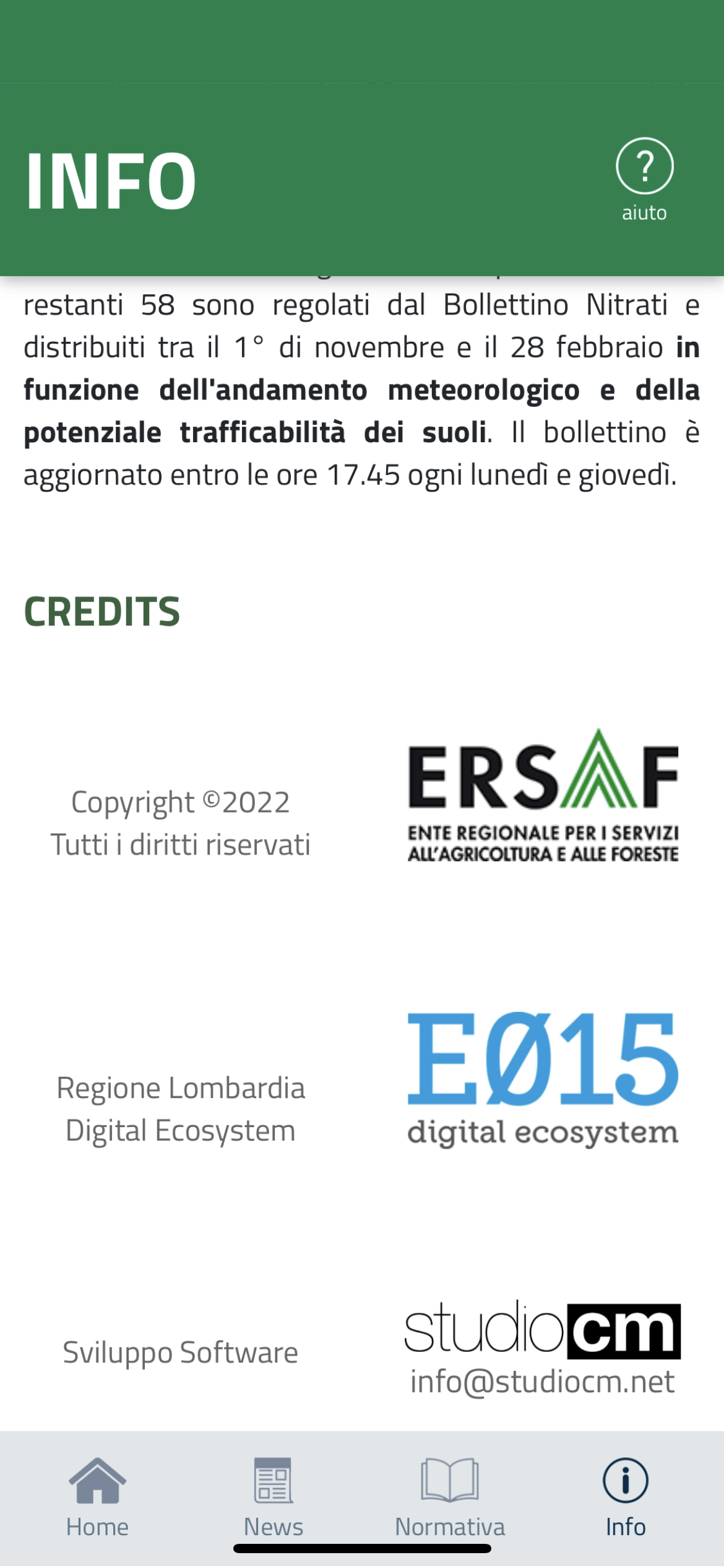 Il Bollettino Nitrati è basato sulle informazioni previsionali del Servizio Meteorologico di ARPA Lombardia e sulle osservazioni agro-ambientali e gestionali acquisite dal territorio in collaborazione con le Organizzazioni degli Agricoltori e valutate da ERSAF e DG Agricoltura.