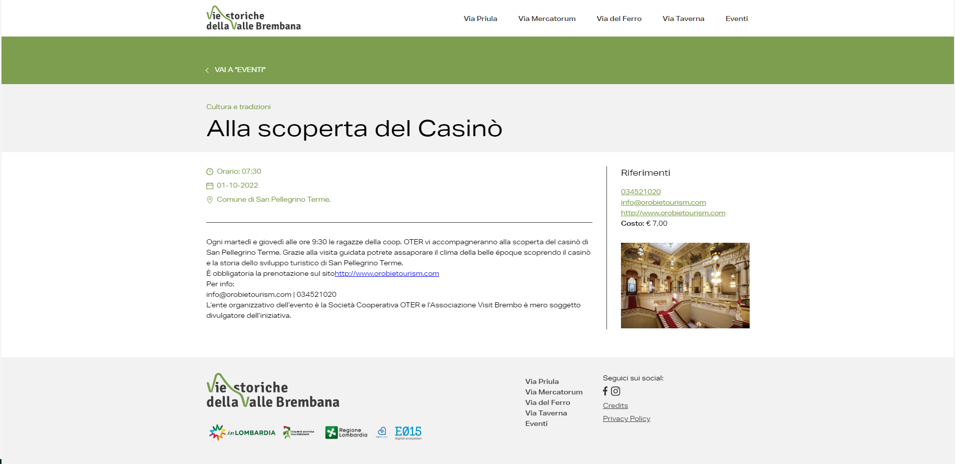 Tramite il portale vie storiche val brembana vengono messi a disposizione gli itinerari delle 4 vie storiche (Priula, Mercatorum, Ferro e Taverna) con tutti i punti di interesse, il portale integra anche una serie di Eventi in programma sul territorio.