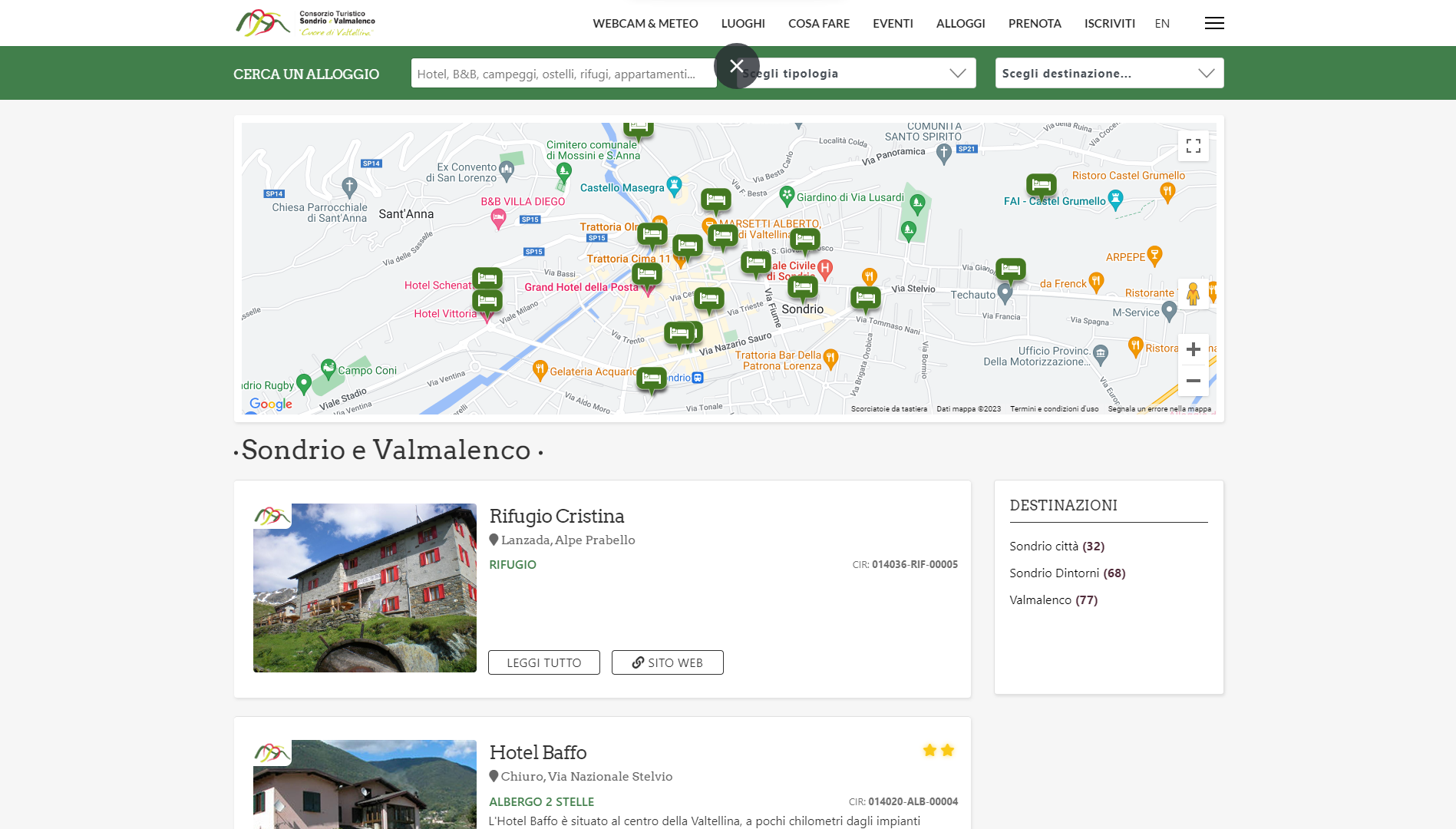 Sito web che pubblica l'elenco delle strutture ricettive nel mandamento di Sondrio
