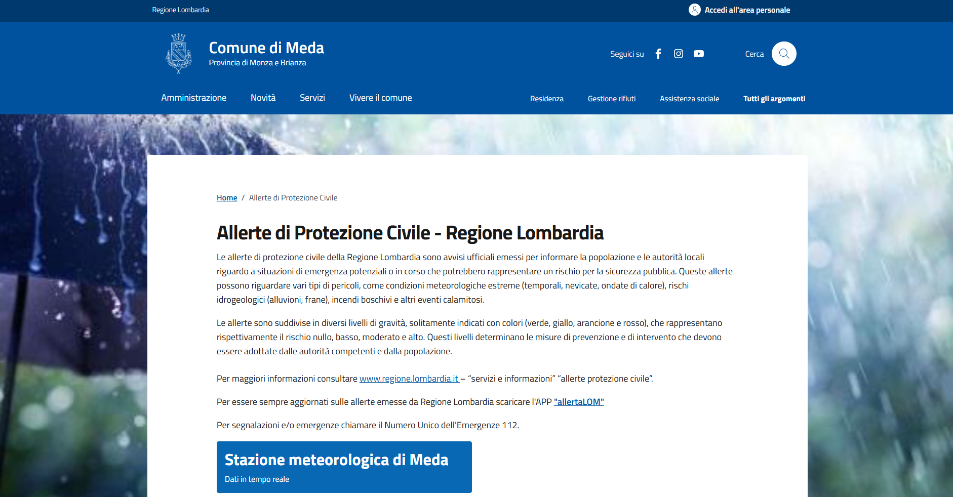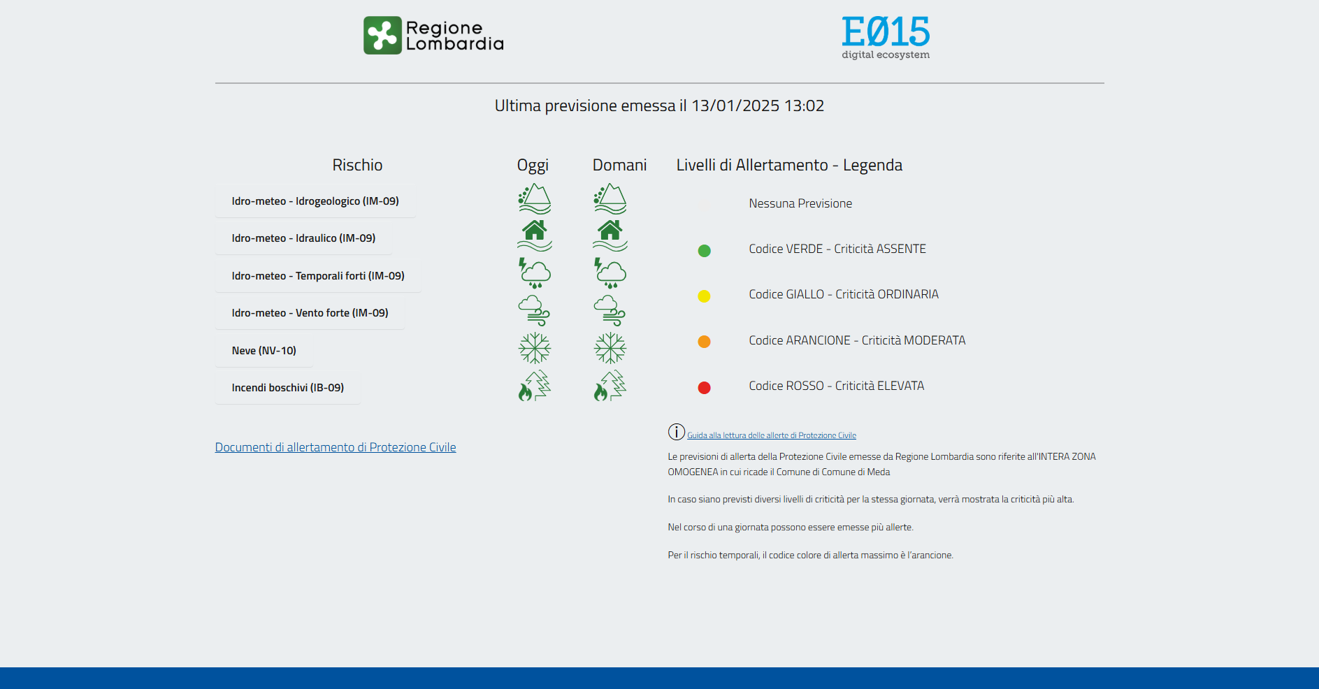 Il servizio relativo alle interconnessioni con l'API E015 "Allerte Protezione Civile" è attivo nei comuni di: