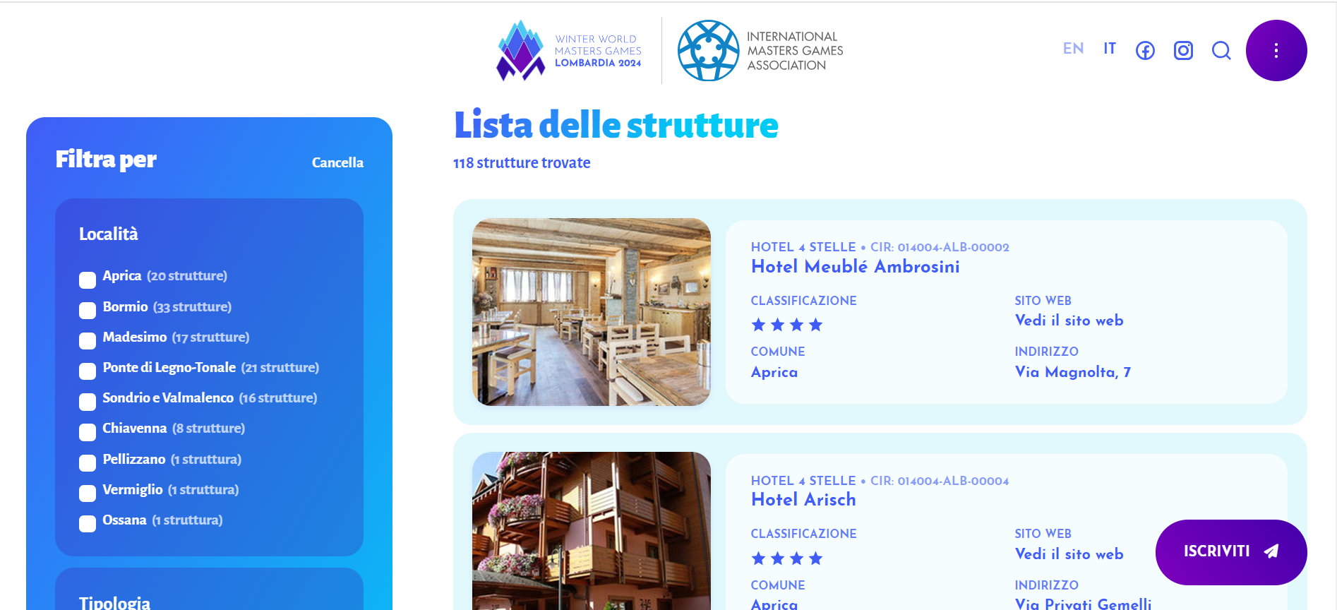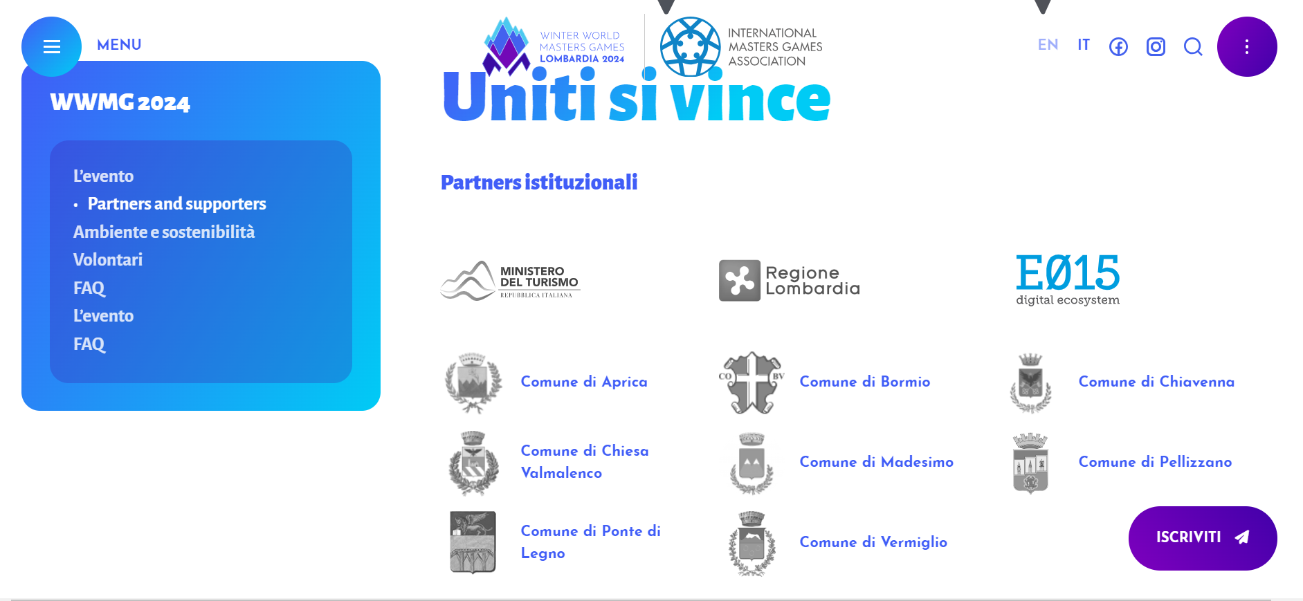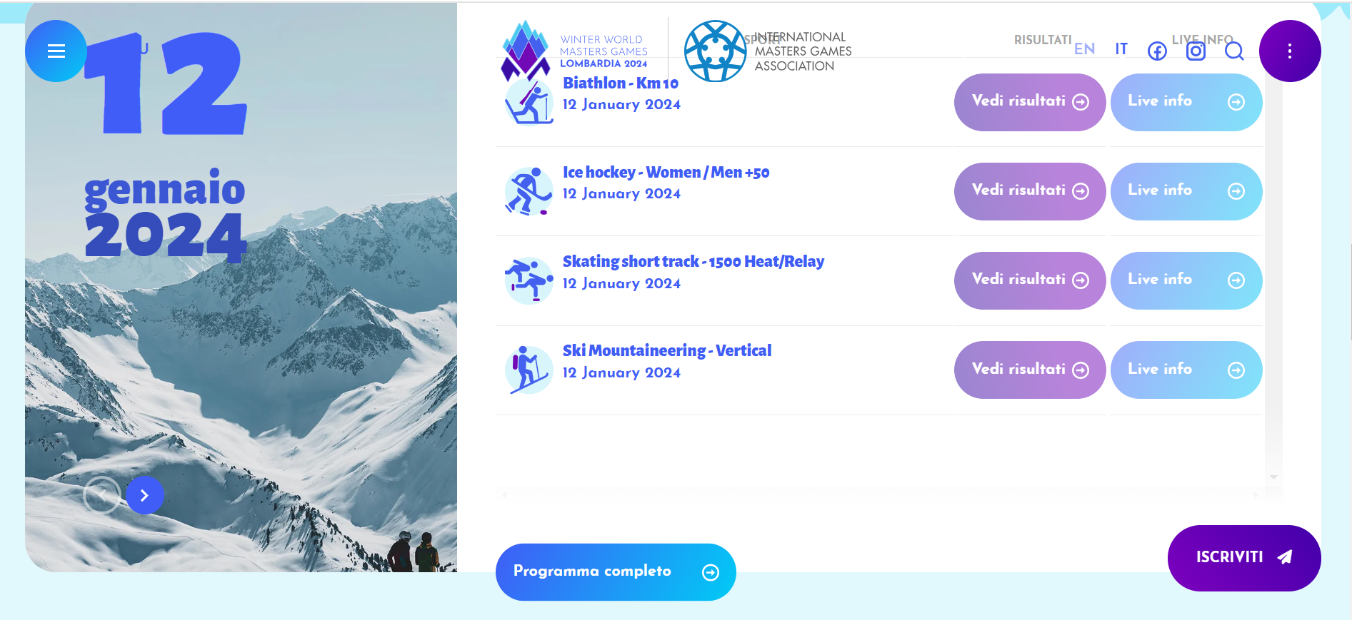 Portale ufficiale dei Winter World Masters Games 2024, l'evento multisport organizzato dall’International Master Games Association (IMGA), l'organizzazione sportiva internazionale che rappresenta gli Sport Master e promuove uno stile di vita corretto, lo sport, il turismo e favorisce i rapporti sociali.