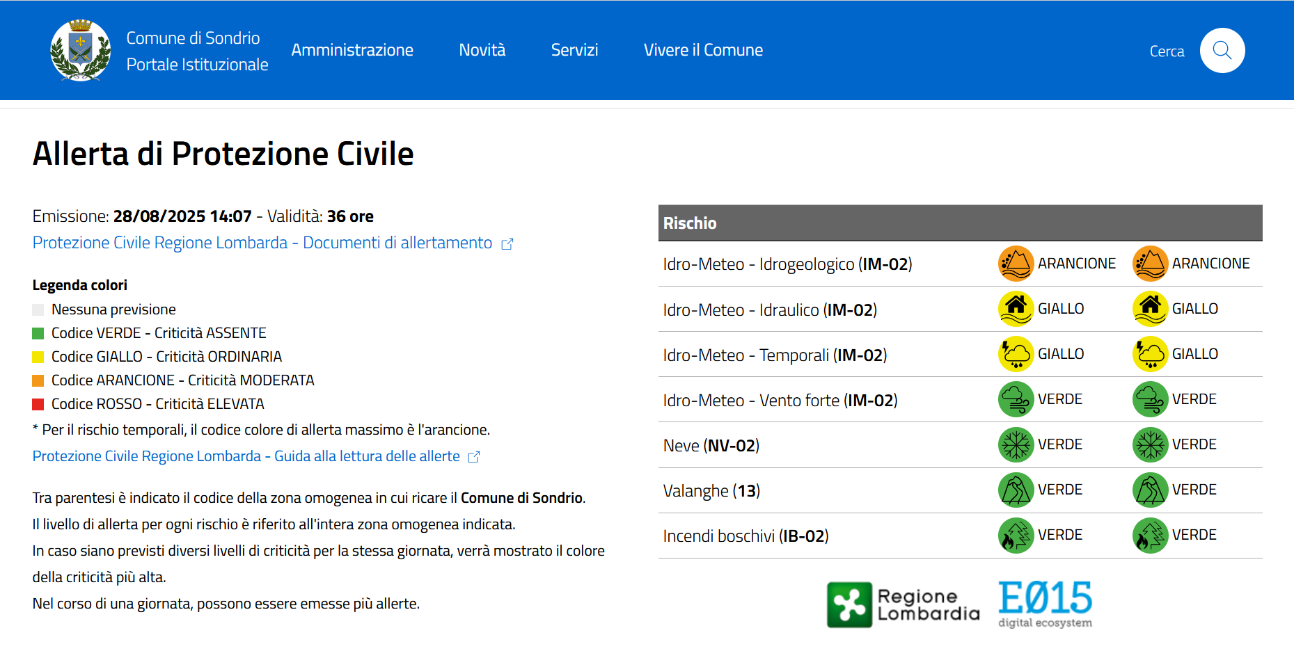 Il servizio relativo alle interconnessioni con l'API E015 "Allerte Protezione Civile" è attivo nei comuni di: