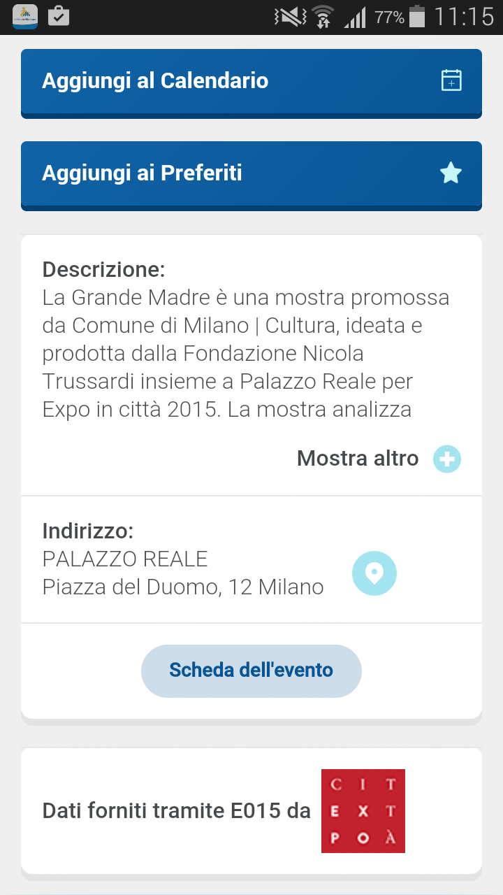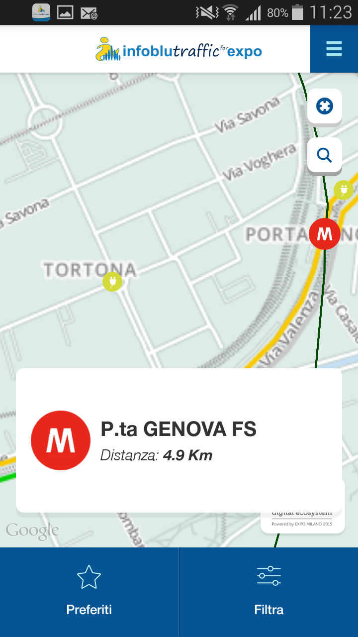 L'applicazione intende fornire informazioni di traffico e di trasporto multimodale agli utenti su device mobile, smartphone e tablet, disegnando su interfaccia cartografica, e quindi in modo georeferenziato, le informazione in dettaglio rese disponibili dai diversi fornitori nell'area di Milano (traffico in tempo reale, orari di partenza e arrivo dei voli aerei, orari di partenza e arrivo dei servizi ferroviari, visualizzazione delle telecamere disposte sui tratti stradali, disponibilità dei parcheggi cittadini ecc.). Le informazioni sono integrate e opportunamente modificate utilizzando l'attuale applicazione già esistente, denominata Infoblutraffic.