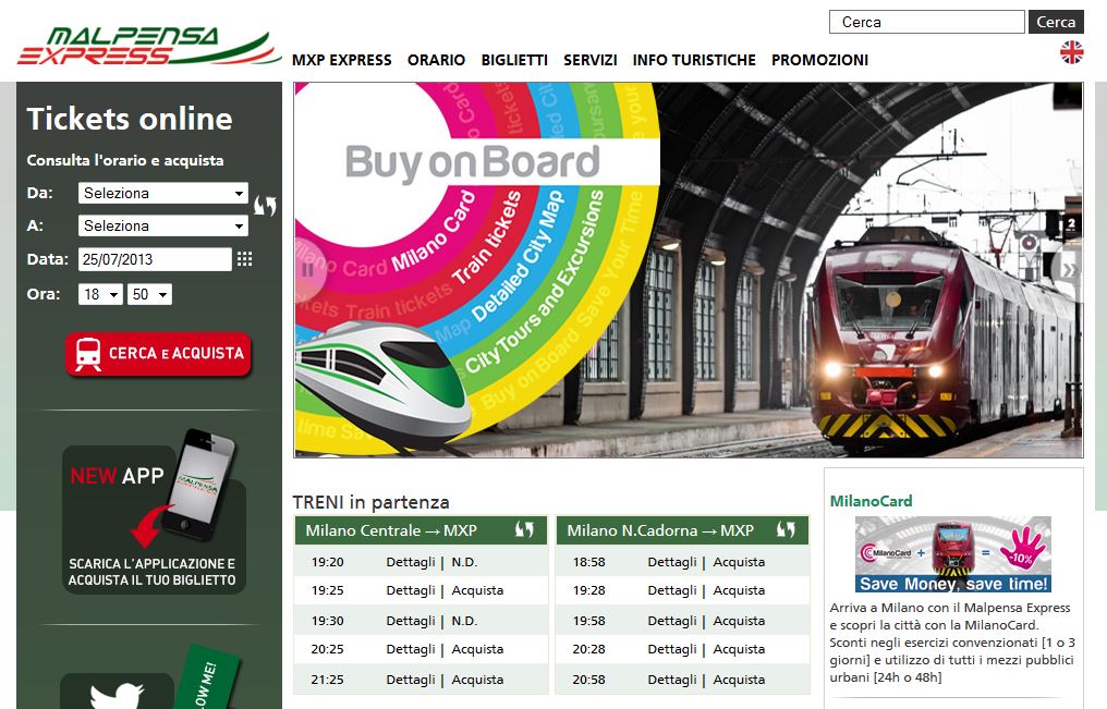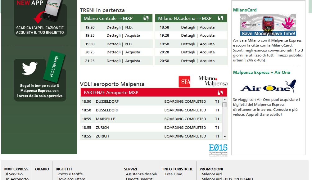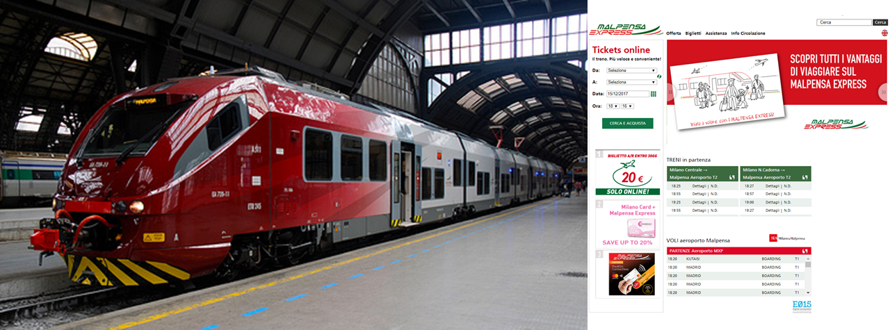 Grazie alla partecipazione all'Ecosistema Digitale E015. il sito web www.malpensaexpress.it - il servizio ferroviario di collegamento tra Milano e l'aeroporto internzazionale di Malpensa - si arricchisce con le informazioni in tempo reale sullo stato dei voli presso l'aeroporto di Malpensa (T1 e T2).