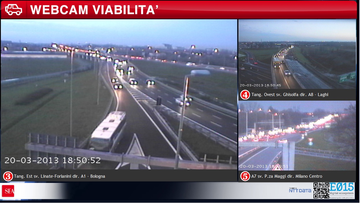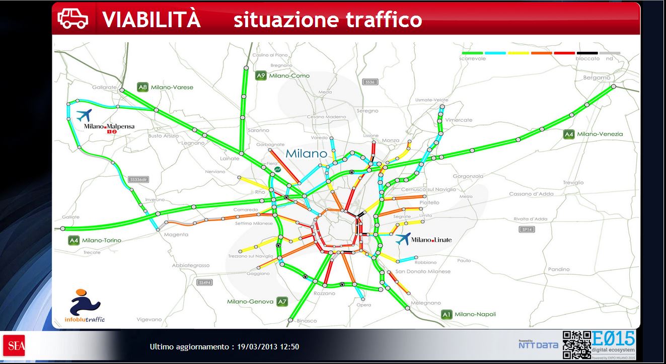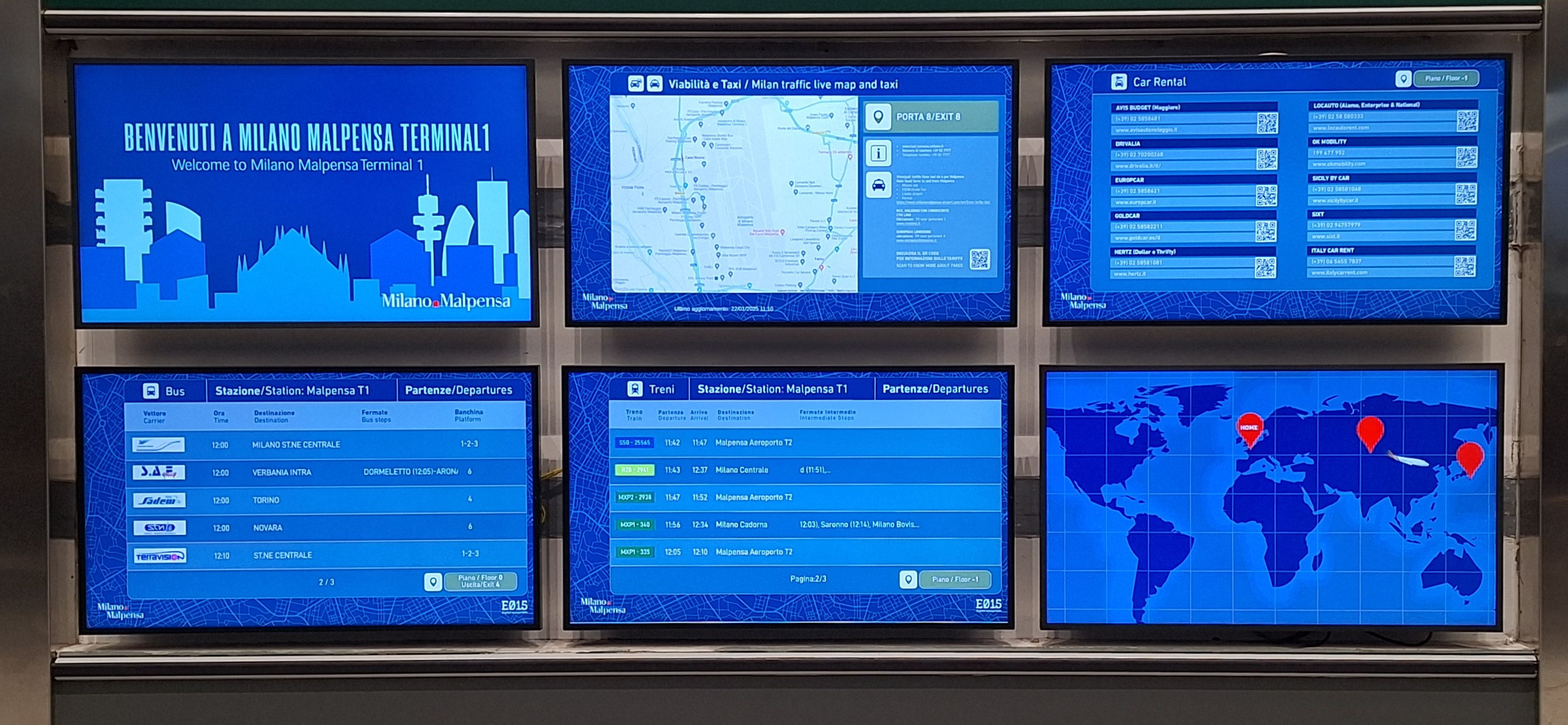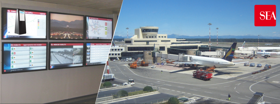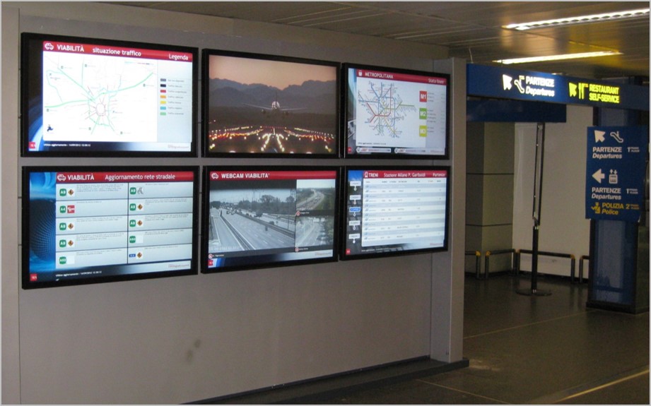 Visualizzazione dei principali dati relativi alla mobilità che interessano gli aeroporti di Milano attraverso monitor posti nelle aree arrivi e riconsegna bagagli di Malpensa e Linate .