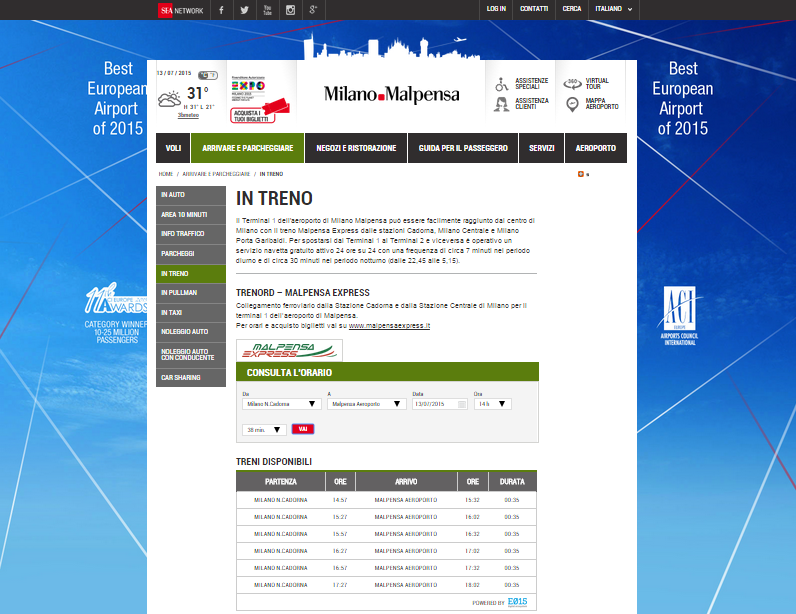 Portale web con informazioni su come raggiungere in treno l’aeroporto di Malpensa.