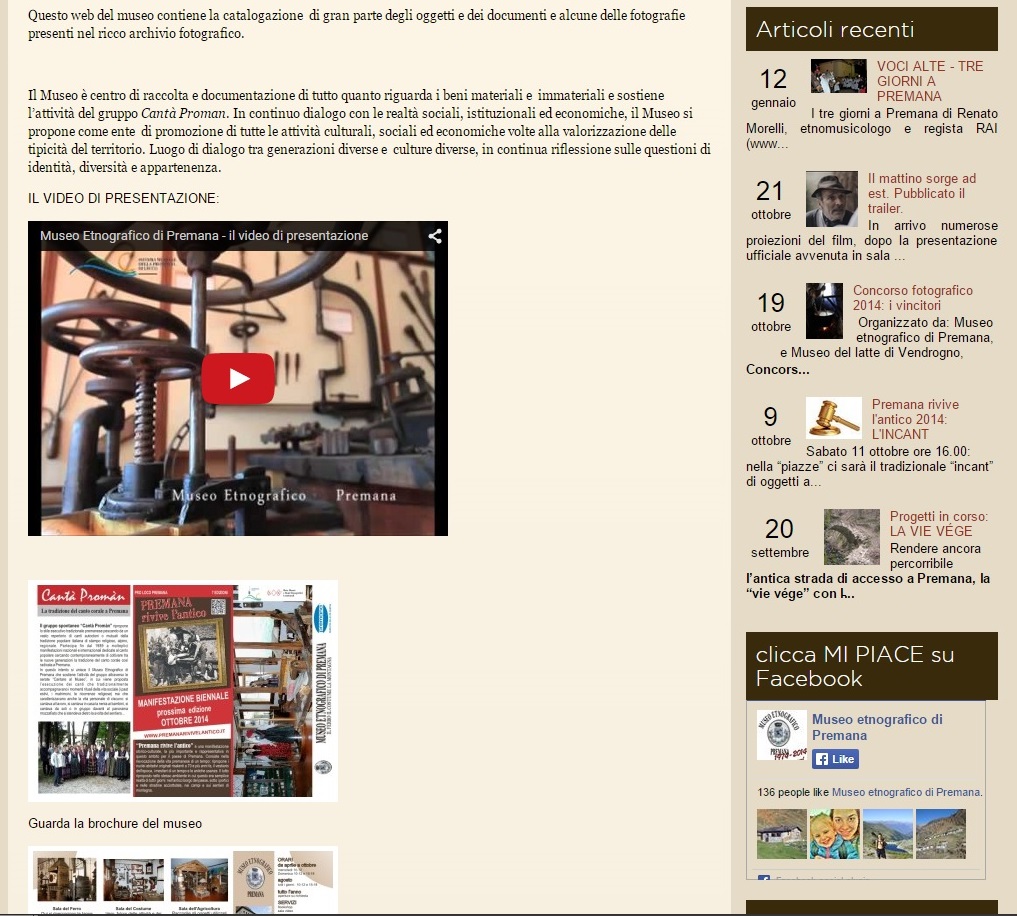 Sito di presentazione del Museo Etnografico di Premana