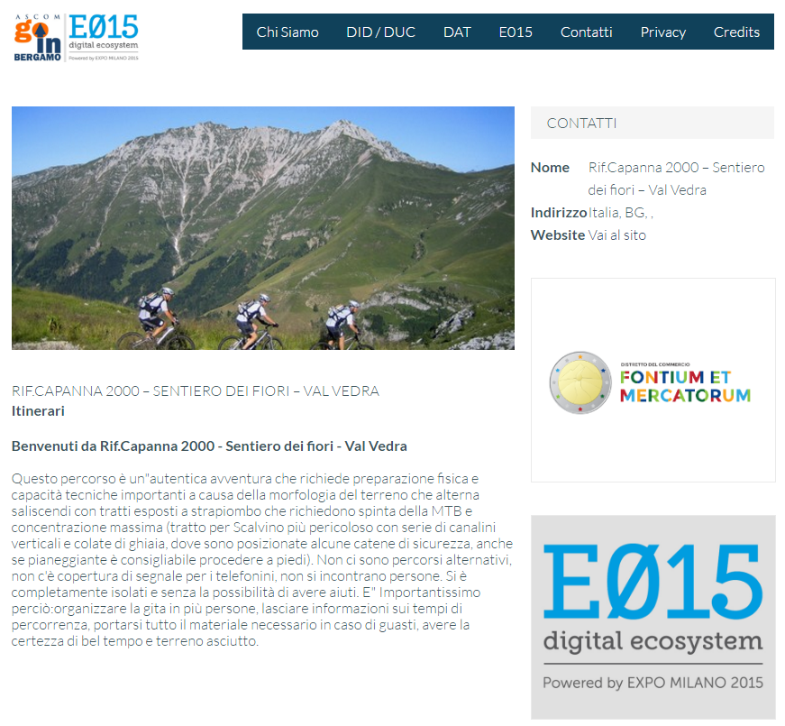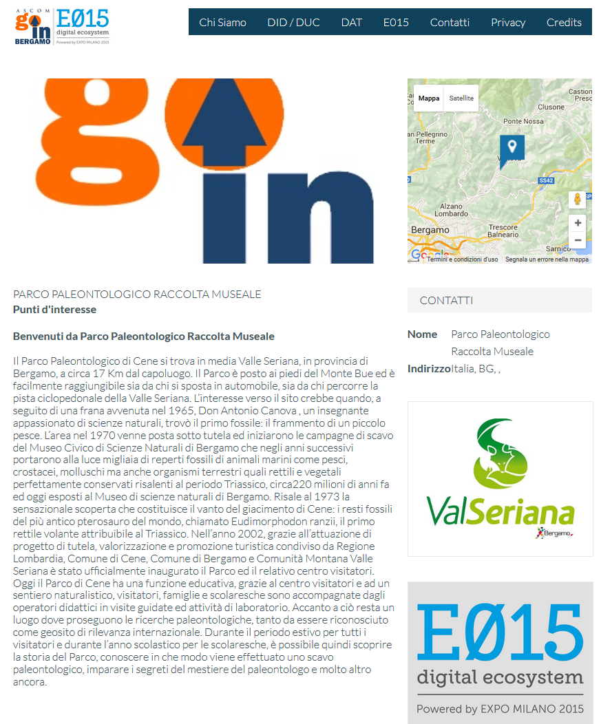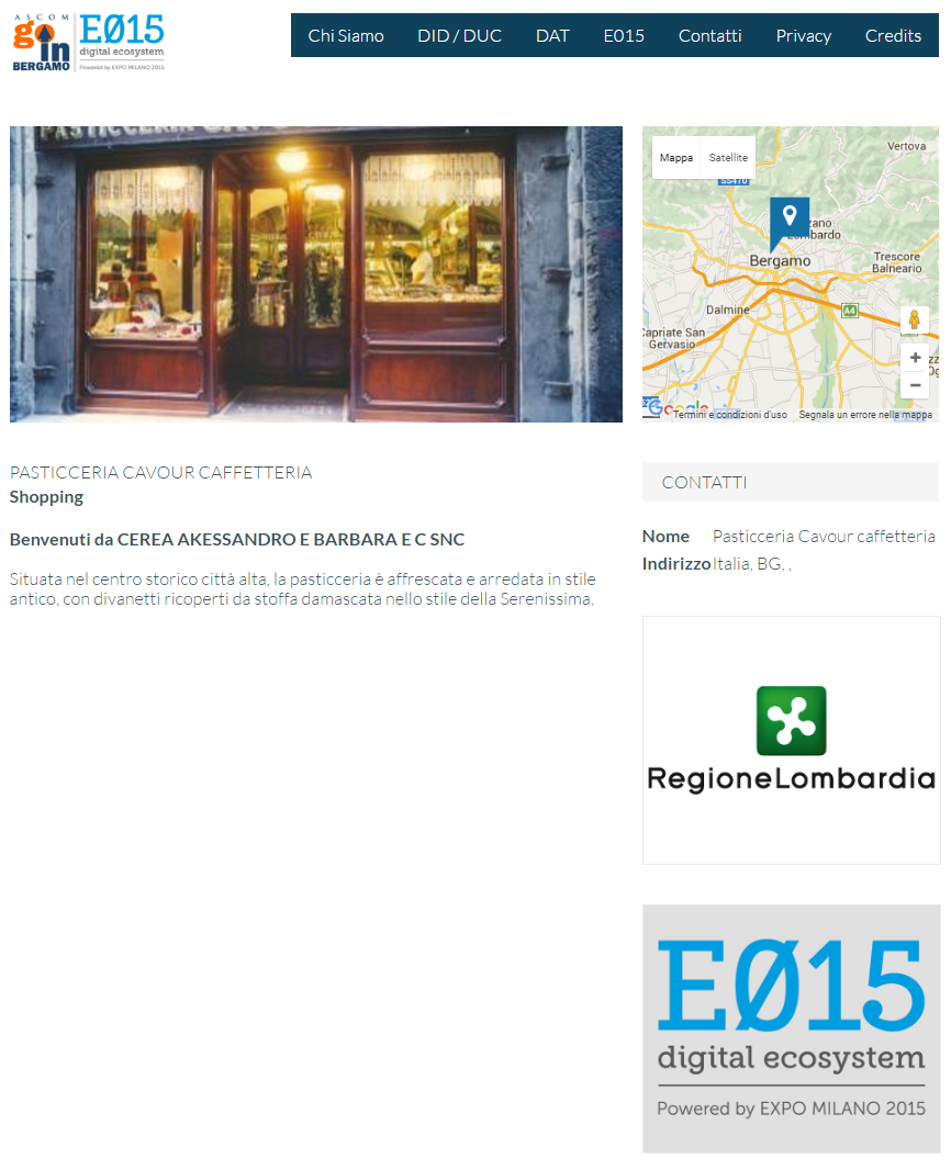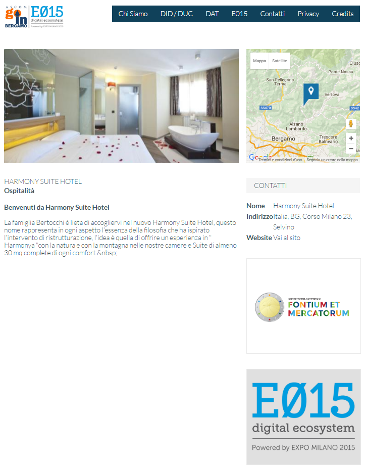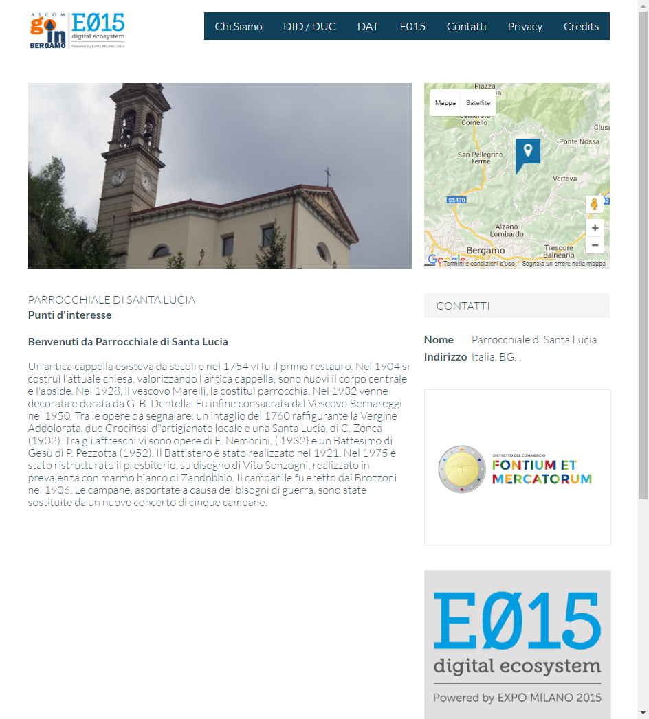 WebApp nella quale vengono geolocalizzati su di una cartina i punti di interesse, gli eventi e gli esercizi commerciali con le loro promozioni dei Distretti dell'Attrattività della Provincia di Bergamo