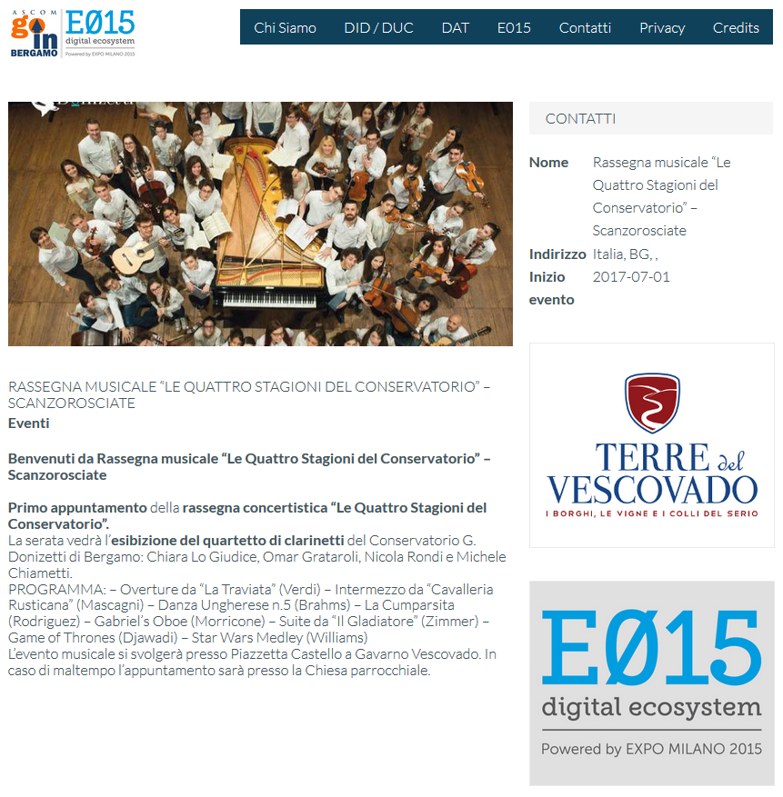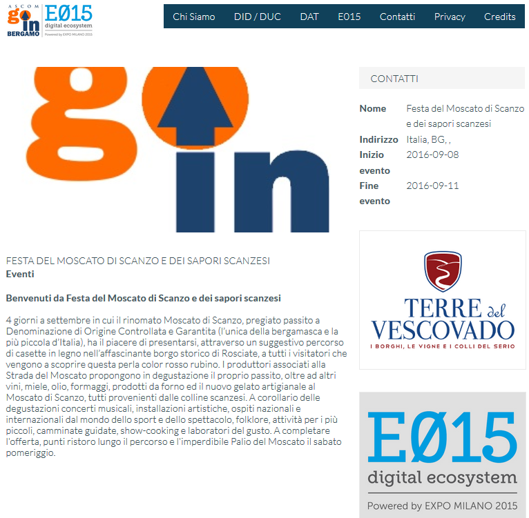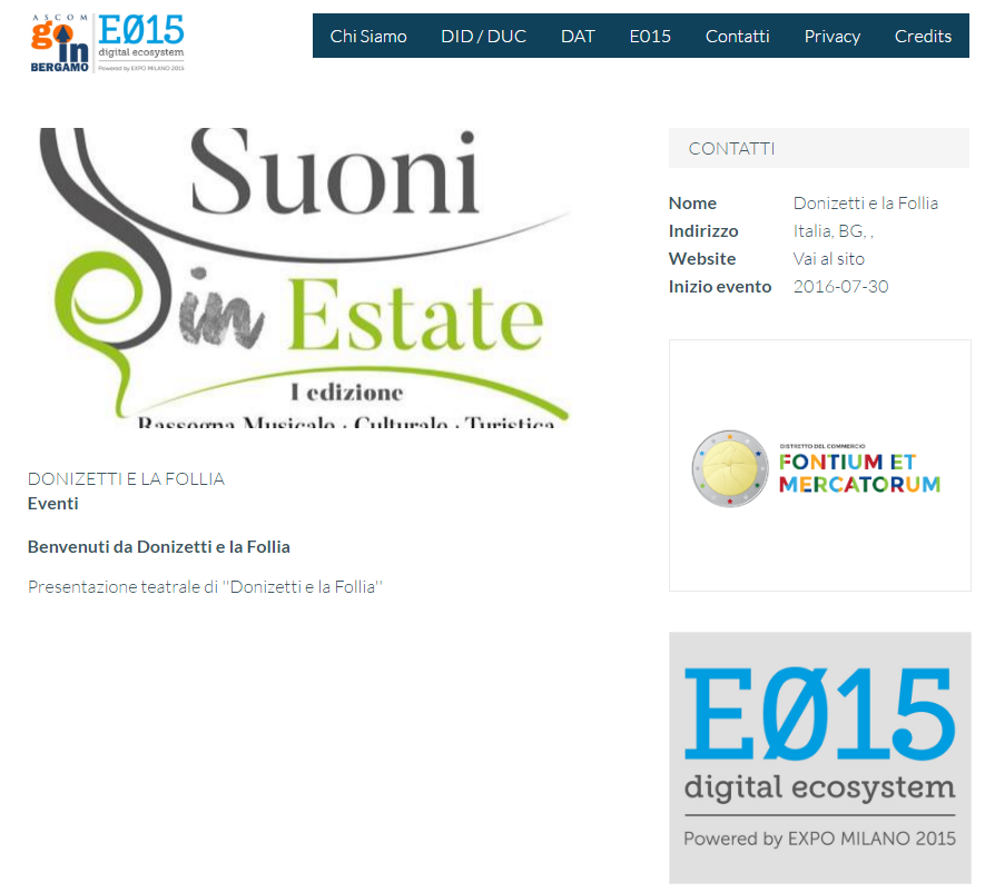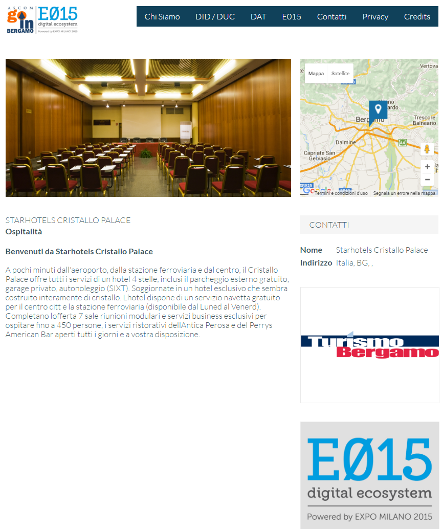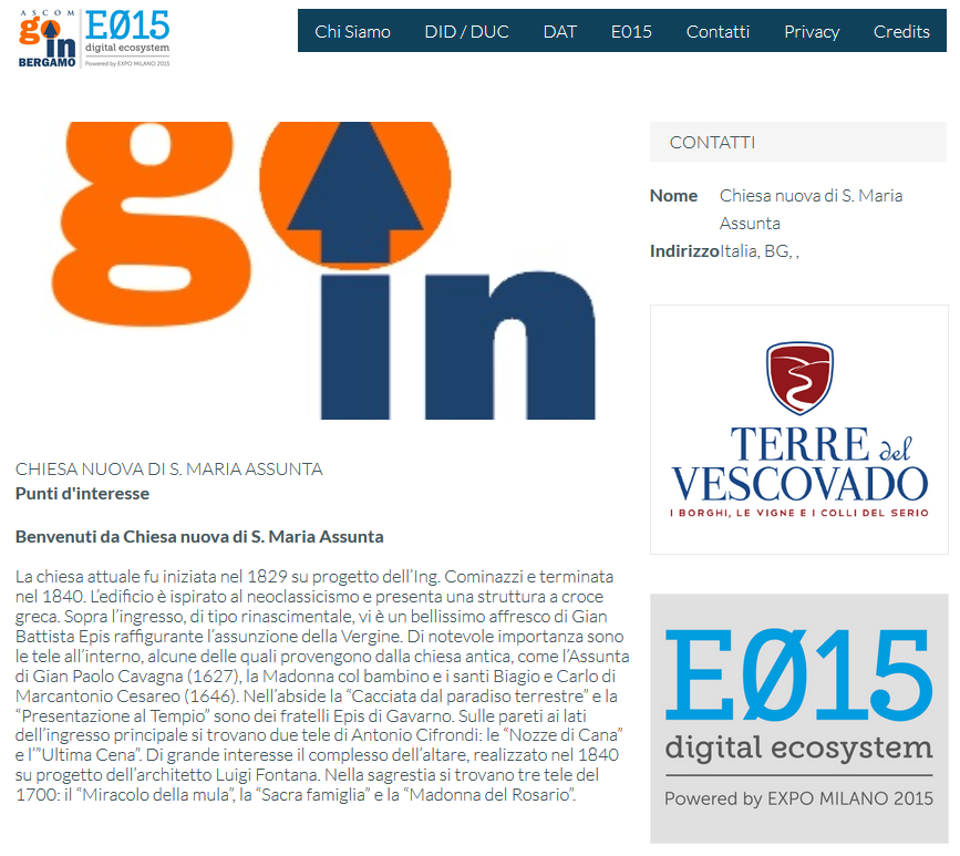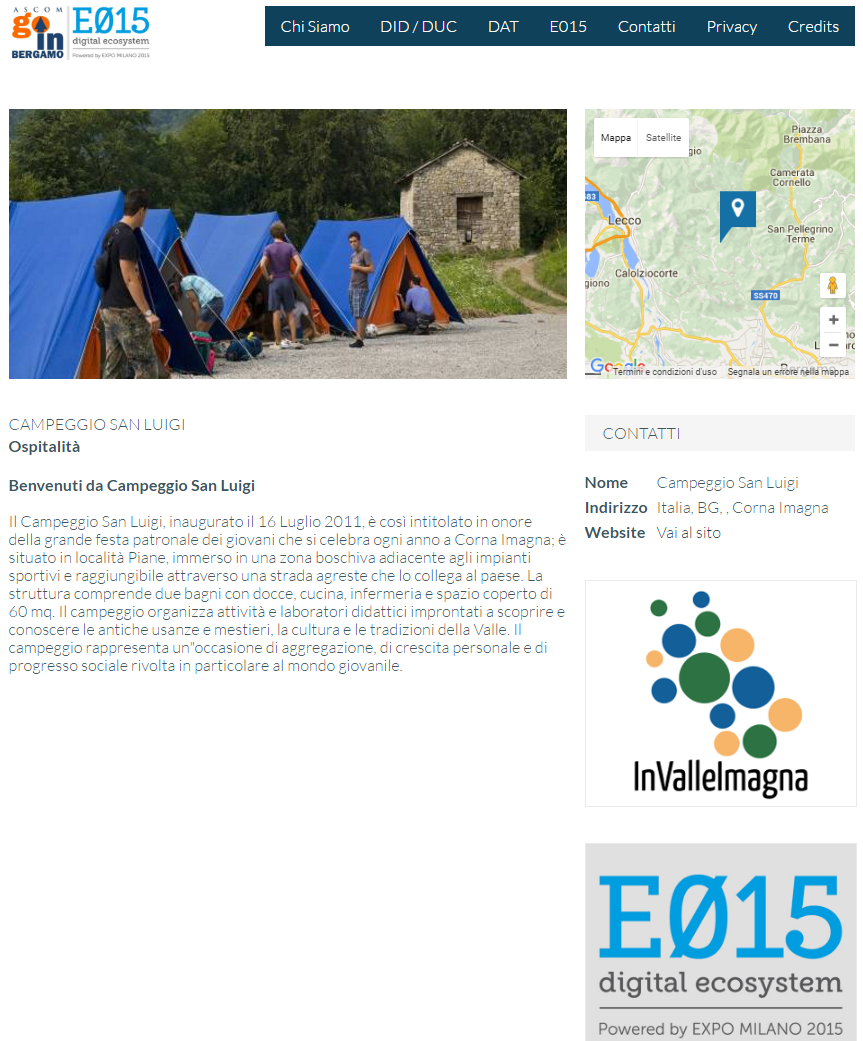 WebApp nella quale vengono geolocalizzati su di una cartina i punti di interesse, gli eventi e gli esercizi commerciali con le loro promozioni dei Distretti dell'Attrattività della Provincia di Bergamo