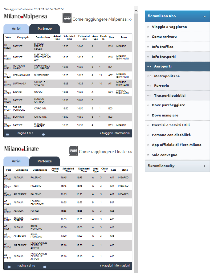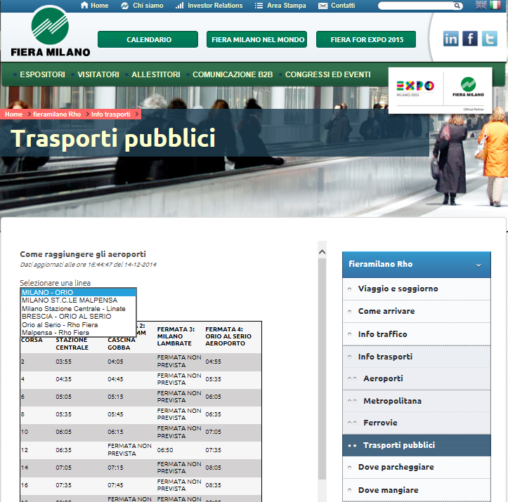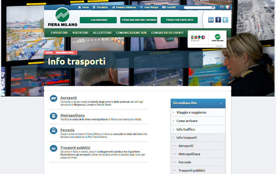 Sito web Fiera Milano - Sezione mobilità